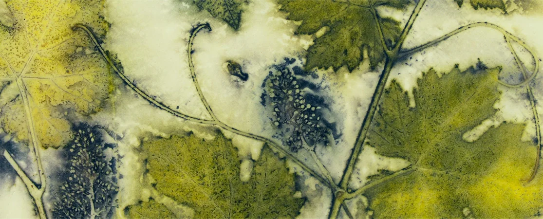 Zowel het creëren van een viltwerk als een ecoprint zijn processen die veel tijd, geduld en aandacht vragen. Het resultaat is een werk dat de toeschouwer uitnodigt te vertragen, een verbinding aan te gaan en er zo onderdeel van te worden.